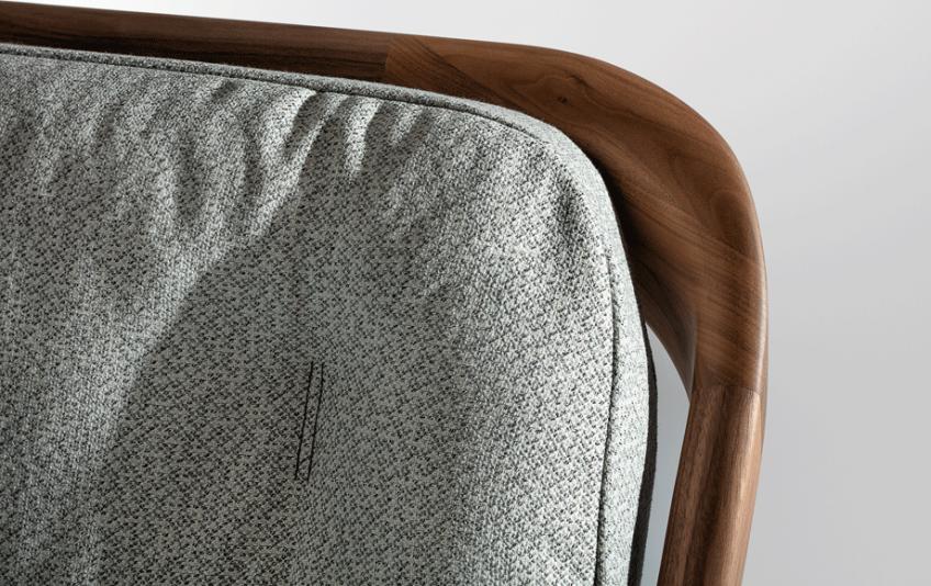 FRIDAY NIGHT ist nicht nur Bett, sondern auch Sofa, Kinosessel, Frühstücks-Lounge und Ruheinsel. Dank der stabilen Kissen im Rückenteil sitzt man gerade und bequem. Das zierliche Nahtbild verwandelt die Rückenlehne in eine gemütliche Kissenlandschaft.